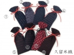 久留米織を使用しており、レトロモダンな和風の色柄で、紐の色が赤や黒でキリリと引き締まりスタイリッシュな印象に仕上がっております。