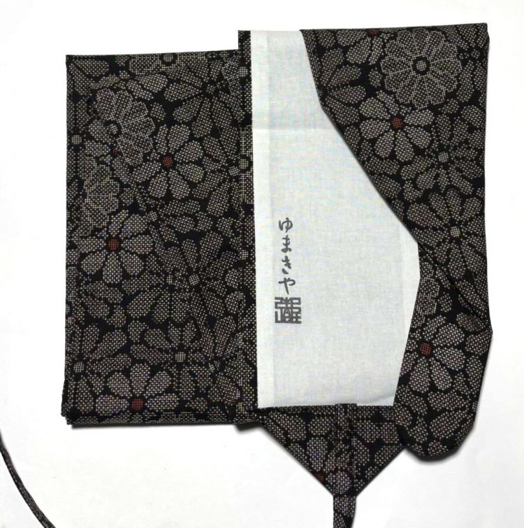 弓巻き・黒地に花(大島紬)