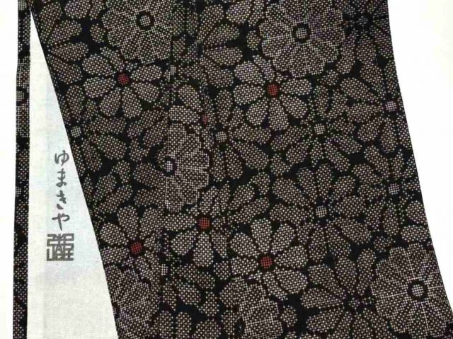 柄:黒地に花(大島紬)