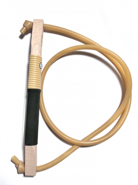 弓道の練習用ゴム弓です。ゴムが上下からでていて、また、形が入木に作られており、弓の感覚に近い感じで練習できます。