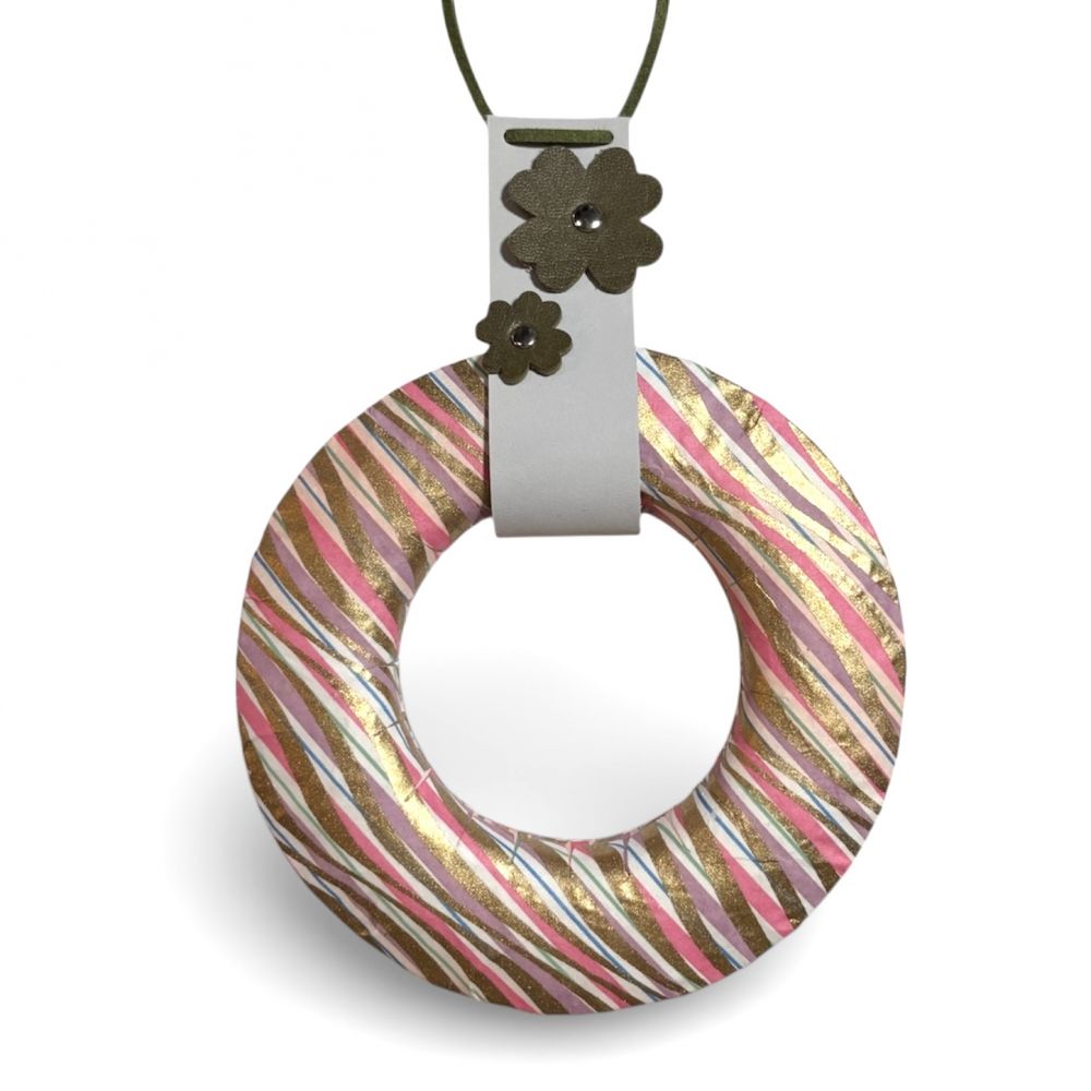 千代紙弦巻-和モダン縞柄+ライトグレーに4つ葉の下げ革セット