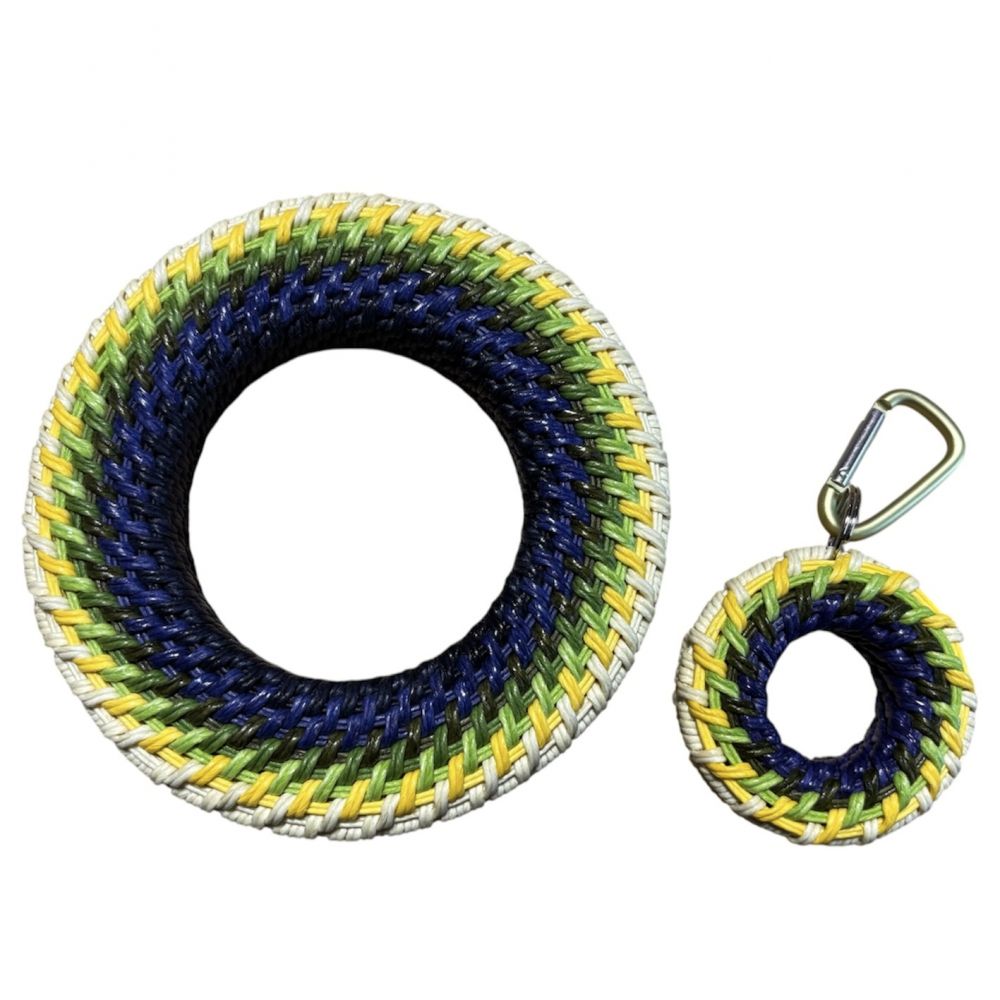 紐製弦巻-黄色と緑系と青系+お揃いストラップ付
